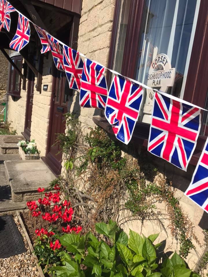 The photographs show the bunting outside Krumbs Cottage on the High Street in Broadwindsor together with the beautiful blue poppies shown below. Enjoy the sunshine. Enjoy the day. #StayAtHome #StaySafe #StaySane 🙂
