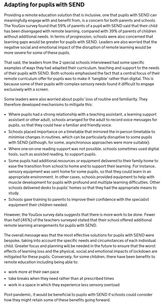 Following months of research SEND (Special Educational Needs and Disability) has now published a report into remote education.