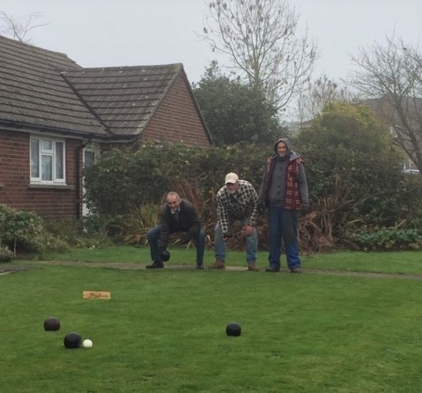 About four months ago, during Lockdown, three residents of Fullers were so bored, they decided to play a game of bowls on a sunny Sunday afternoon and enjoyed a small barbecue of chicken and burgers on one of their lawns.  They so enjoyed their afternoon, they decided to do the same the following week. They have now been playing each Sunday and maintaining the chosen lawn for almost four months, religiously whatever the weather.