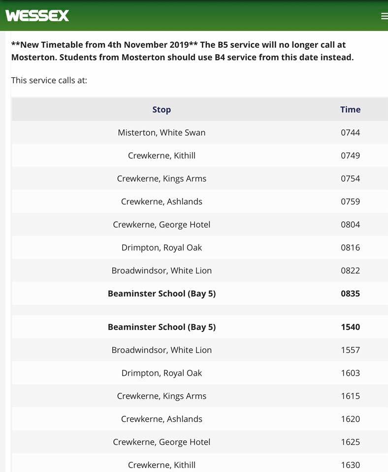 - Buses to Crewkerne will leave The White Lion at 09.51hrs, 13.02hrs, 14.50hrs & 19.04hrs.