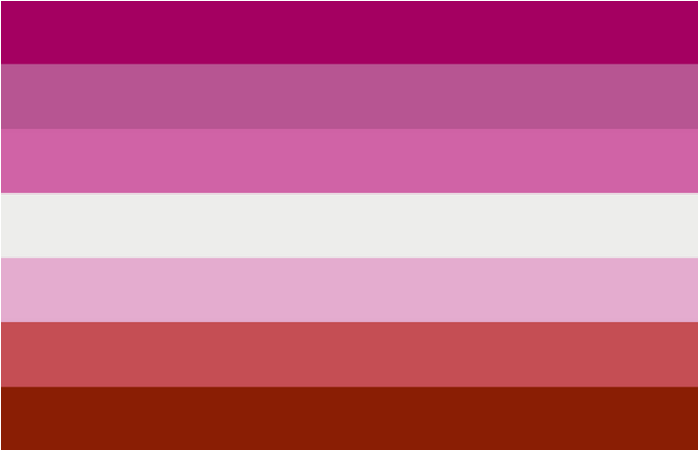 Sometimes it has a lipstick mark in the corner indicating that the holder is a “lipstick lesbian” (slang for a lesbian who exhibits a greater amount of feminine gender attributes, such as wearing make-up).  Some lesbians also oppose use of any flag revised from the lipstick original because its designer Natalie McCray reportedly wrote racist, biphobic and transphobic comments on a since-deleted blog.