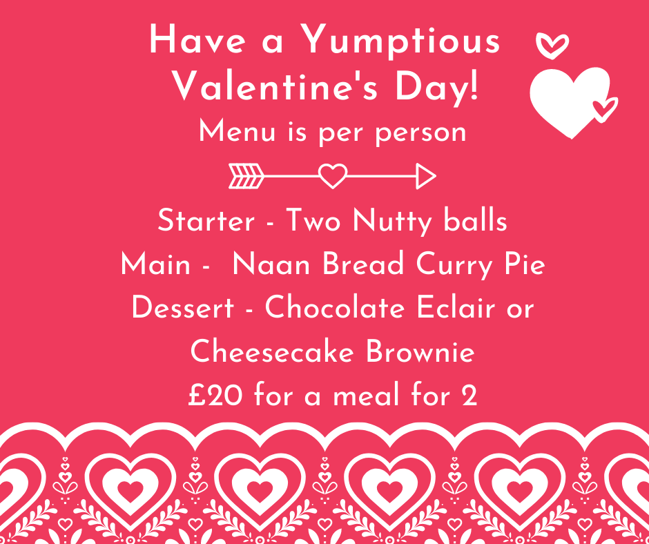 Her Valentine’s Day Menu is below and her usual takeaway menu below that. With free delivery to Broadwindsor, the Bridport, Beaminster & Lyme Regis areas, please place your Valentine’s Day orders by noon on Friday.