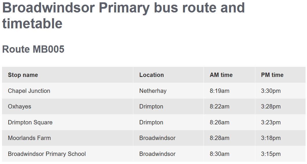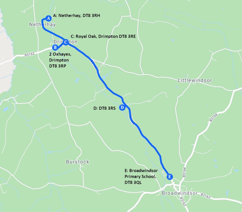 Broadwindsor Primary School Bus Timetable and Route #Broadwindsor #Netherhay #Drimpton #SchoolBus #Timetable #SocialDistancing #StaySafe Share this: Share on X (Opens in new window) X Share on WhatsApp (Opens in new window) WhatsApp Print (Opens in new window) Print Share on Facebook (Opens in new window) Facebook Like this:Like Loading...