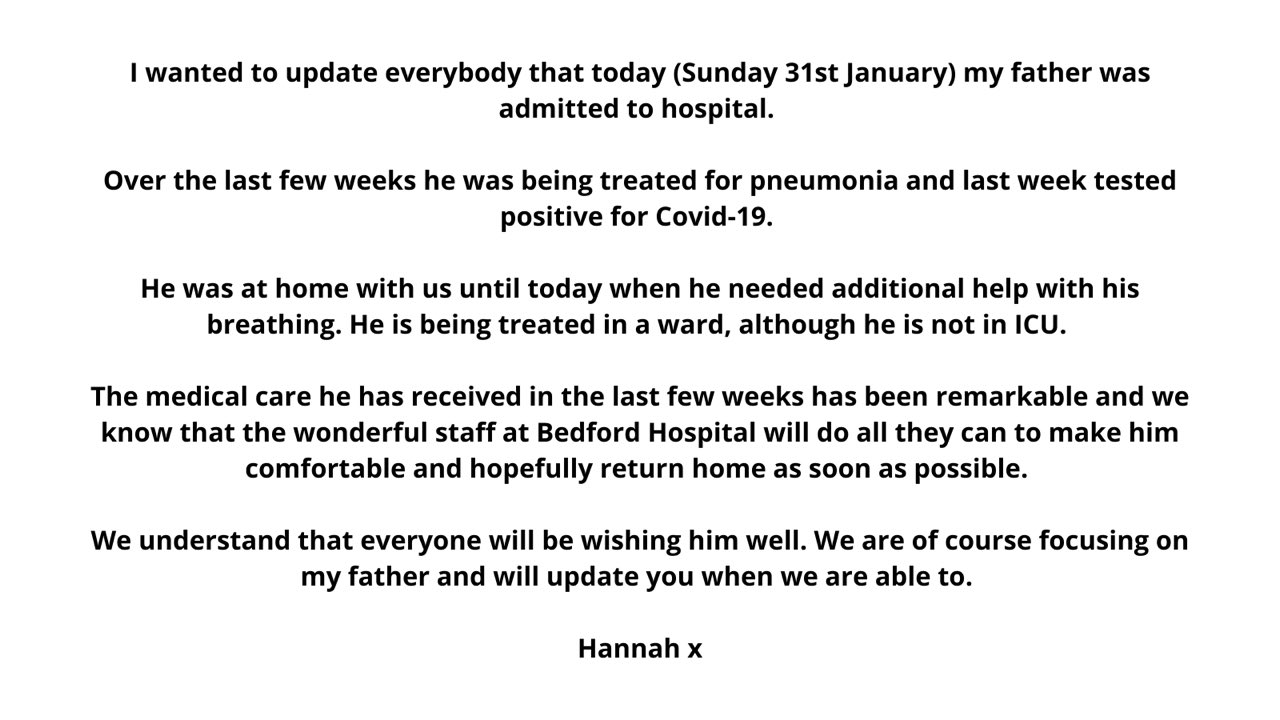 Captain Tom Moore’s daughter Hannah released this statement earlier this evening: