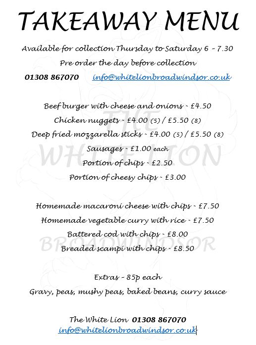 #Broadwindsor,#Burstock,#Blackdown,#Drimpton,#Hursey,#Kittwhistle,#Seaborough,#Dorset,#Village,#Community,#TheWhiteLion,#Specials,#SundayRoast,#FreshFood,#2021,#Takeaway,#Homemade,#SocialDistancing,#YumYumInYourTum,#SupportYourLocal,#StayAtHome,#BeKind,#StaySafe