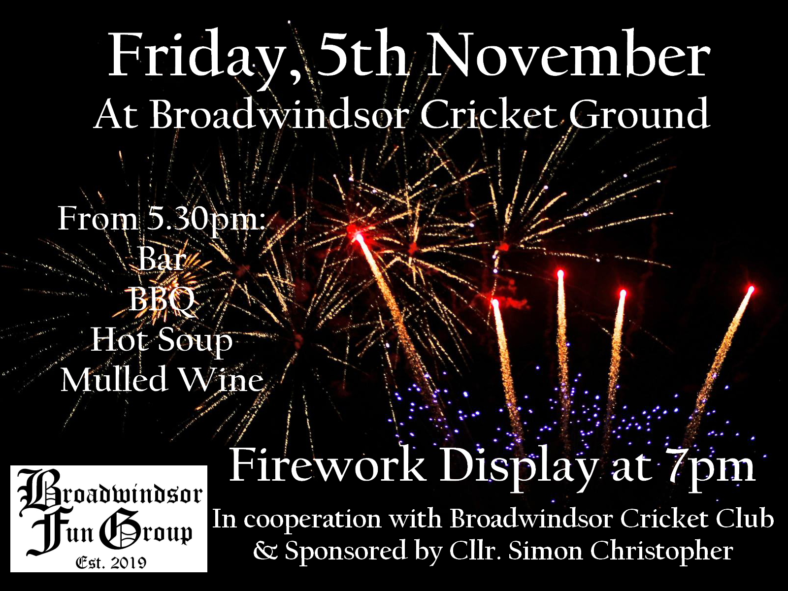 A huge success was the Fireworks event in association with Broadwindsor Cricket Club with donations from Cllr. Simon Christopher and Broadwindsor House. More HERE.